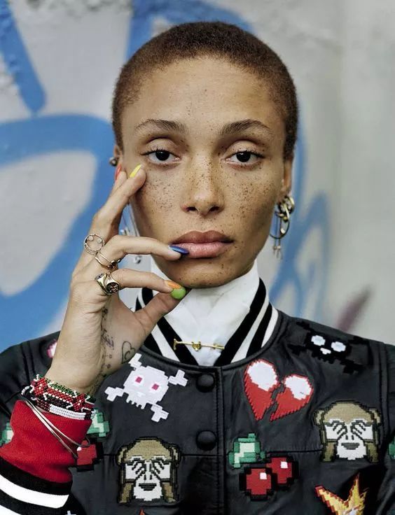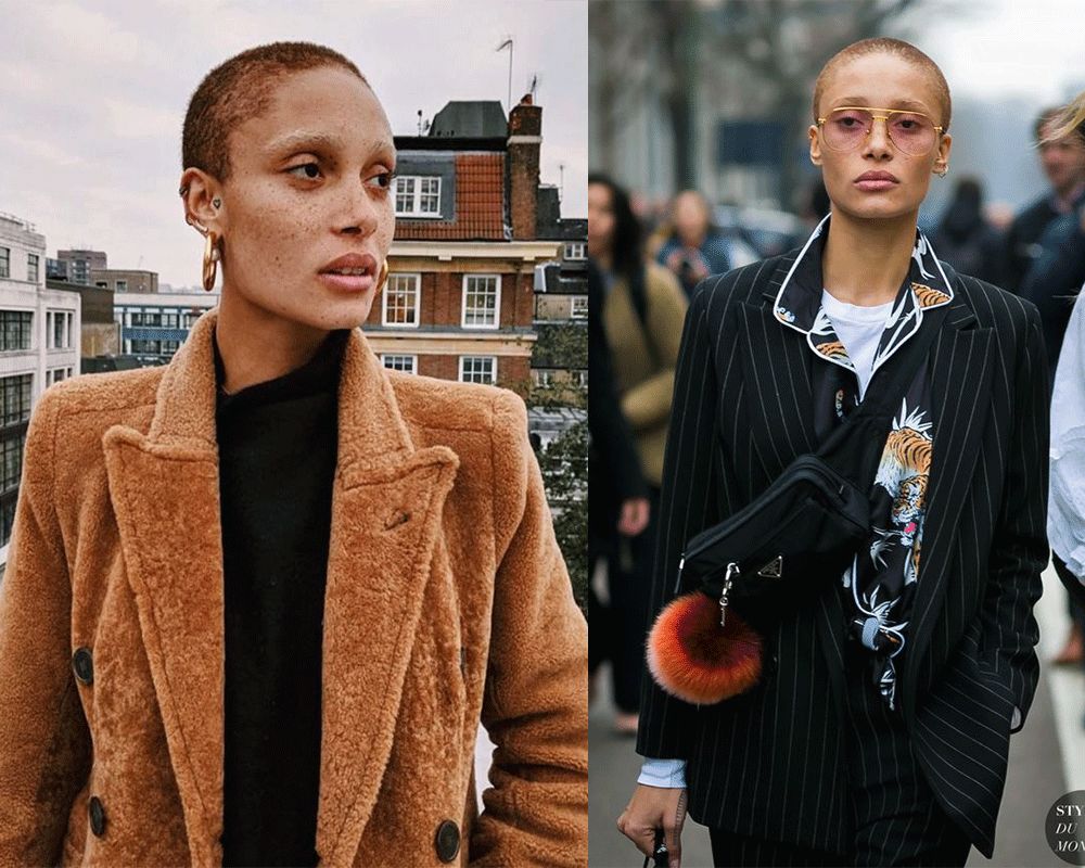 Adwoa的另一个决定,是给自己剃了一个光头!大胆的光头也不会阻挡她的自然美,反而驾驭起造型来更具有了雌雄莫辩的美感。