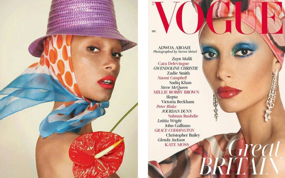 ▲ 左:Adwoa成为Marc Jacobs官方脸;右:英国版Vogue新主编的首个Cover Girl。