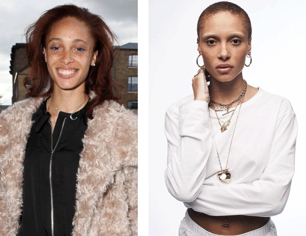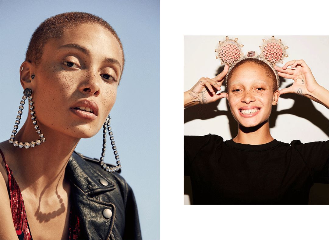 Adwoa Aboah有个大胆的光头发型,满脸雀斑,黝黑皮肤还有不完美五官,却打败了“带货王”Hadid姐妹和超模Cindy Crawford的大长腿女儿Kaia Gerber成为了2017时尚圈最红模特!