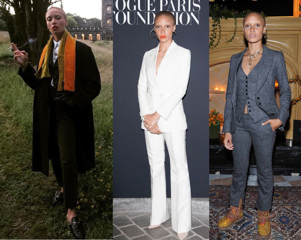 常走中性风的Adwoa穿起西装三件套也是够够的,少见的是居然搭配了一双UGG,没有100%的自信可不敢出门呀。