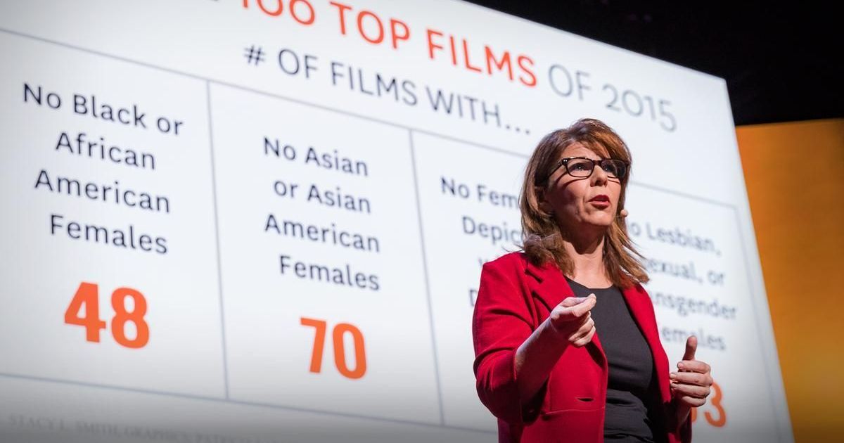 史黛西·史密斯(Stacey Smith)是南加州大学安能伯格新闻与传播学院教授,长期以来致力于研究好莱坞幕前幕后的多元包容度。在2017年的一次TED演讲中,史密斯谈到了好莱坞的“包容度危机”(inclusion crisis),她认为,虽然近些年来,人们对这一议题的关注度有所提升,但总体来说,在电影和电视剧中,女性、有色人种和性少数角色的人数并没有显著的增加。