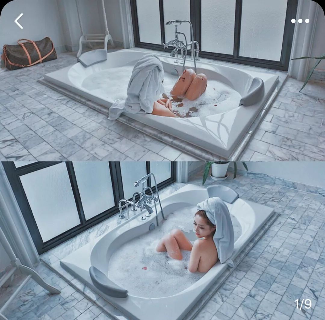 说说落地窗,硕大的ins黑白风落地窗,加上简洁的白浴缸,想拍泡泡浴同款的就放心去吧,酒店有准备泡泡浴液给到客人使用,不用自带。