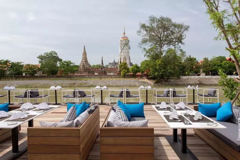 严格来说这家不在曼谷,算曼谷周边的大城府,酒店位于湄南河河畔,各个角落都适合拍照打卡,360°无死角的美。躺在露台的躺椅上,晒个阳光浴,顺便就能看见对岸三座建于15世纪的古迹佛塔——沙旺寺。