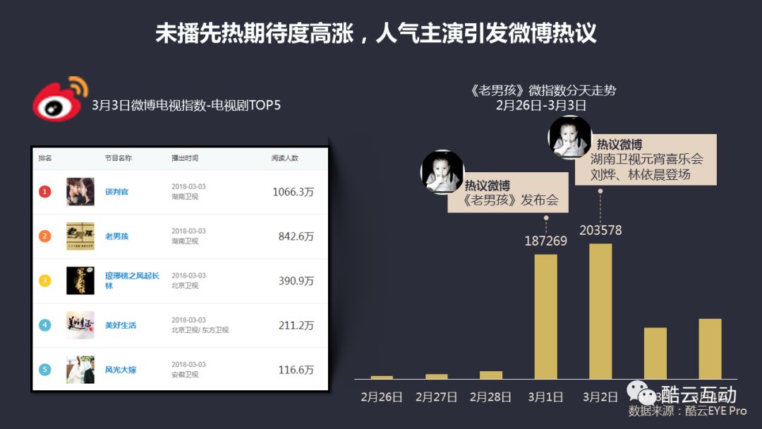 在网络讨论声量方面,《老男孩》未播先热,颜值、演技兼备的主演阵容,加上新颖的故事主题使得观众期待度高涨。3月1日起,《老男孩》召开发布会,主演刘烨发布微博带动微指数飙升,3月2日,湖南卫视元宵喜乐会刘烨、林依晨登场,再度提升讨论热度,3月3日,《老男孩》已登上微博电视指数第二位。刘烨、林依晨CP感颇受好评,实力派演技也收获观众点赞,1-2集播完获得豆瓣评分7.8。