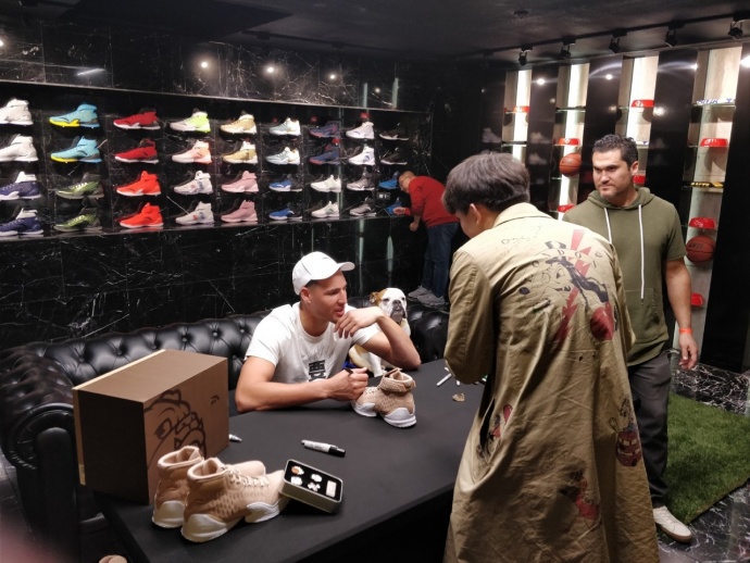 “难道不是为了见克莱·汤普森一面,再拿个签名?”一位中国球迷或许道出了核心原因。这次线下活动,安踏球星克莱·汤普森亲临现场,为球迷顾客提供签售和合影机会。作为新鞋的设计元素,汤普森的爱犬Rocco亦亲身捧场。这样的球星营销手段,在金州勇士队据地旧金山拥有足够的吸引力。