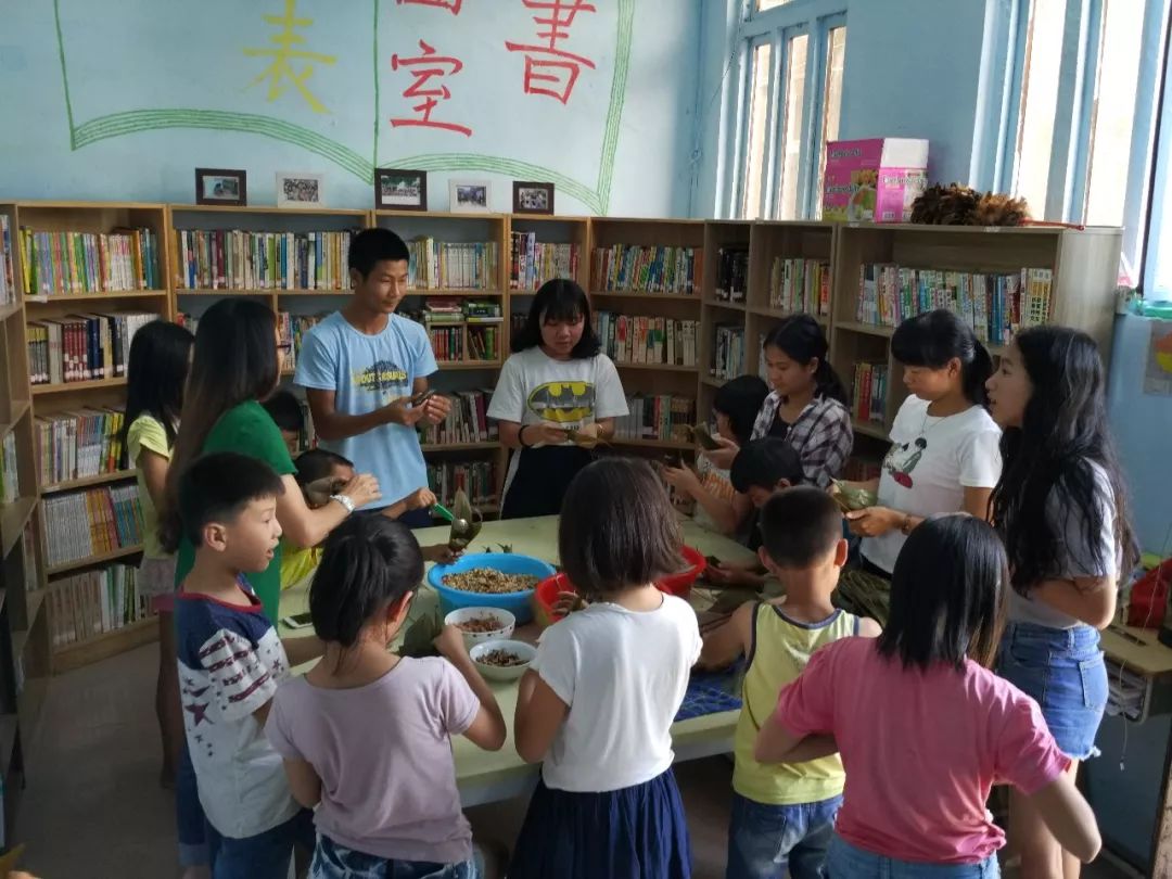 2016年6月8日端午节,图书室组织孩子们一起包粽子
