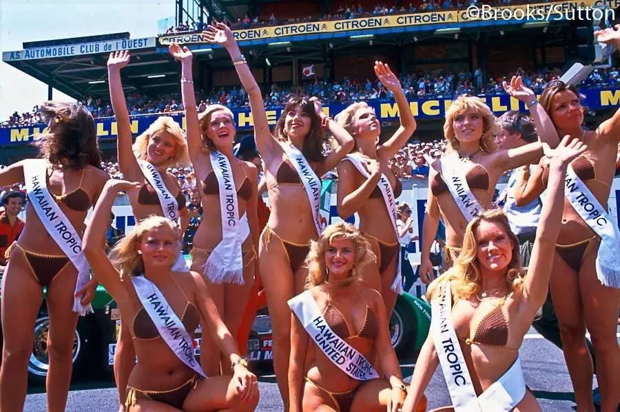 1983年,Hawaiian Tropic公司从美国空运来参加法国勒芒24小时耐力赛开幕式的比基尼女郎