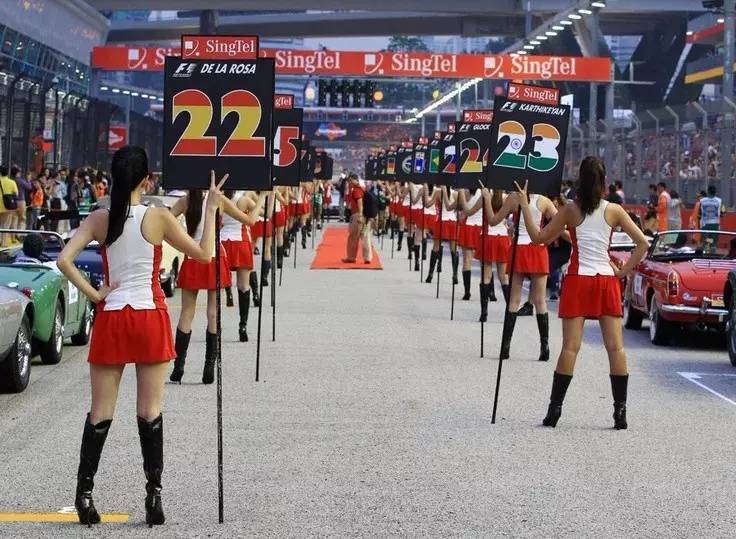 赛道女郎又被称为“Paddockgirls”(“Paddock”是赛马运动前,马匹被安置上马鞍和等待出发的区域,引申为赛车运动中发车前的准备区域),她们脚踩恨天高,身穿短衣热裤在发车前为赛车站台、为车手们打伞、为比赛摇旗呐喊歌舞助兴。