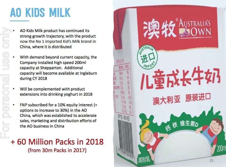 据介绍,对华出口的这些产品由自由食品在澳大利亚的Taren Point工厂生产,但该公司指其“产能受限”,在报告期内已经在其Shepparton工厂安装了一条生产200毫升包装的高速生产线,预计2018年将可以生产6000万盒以上的产品。根据该公司给投资者的演示,2017年这个数字为3000万盒。