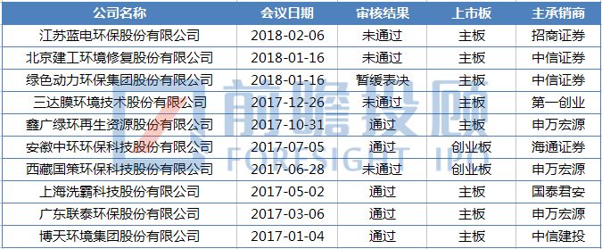 据不完全统计,2017年至2018年2月6日,涉及环保业务的IPO企业共计10家,其中主板上会8家,占比80%;创业板2家,占比20%;