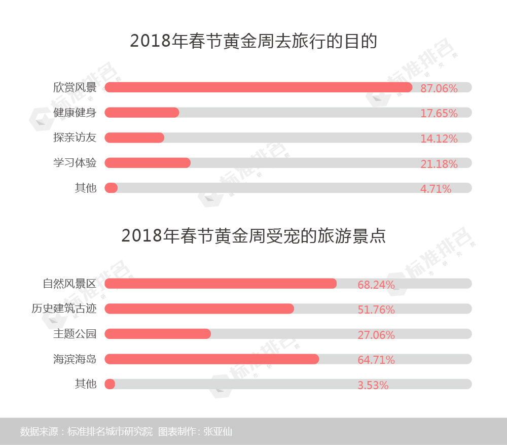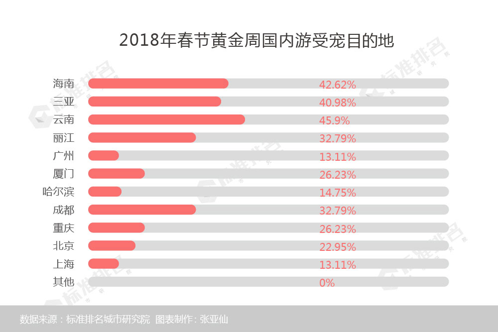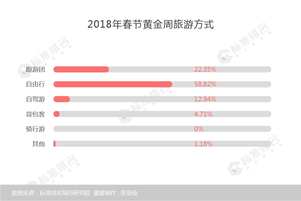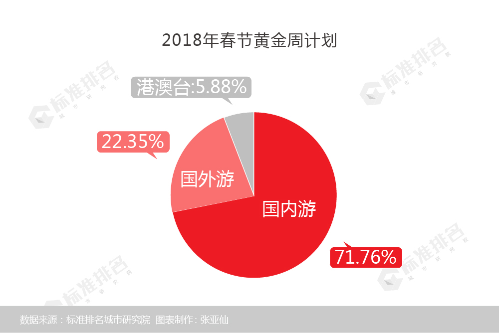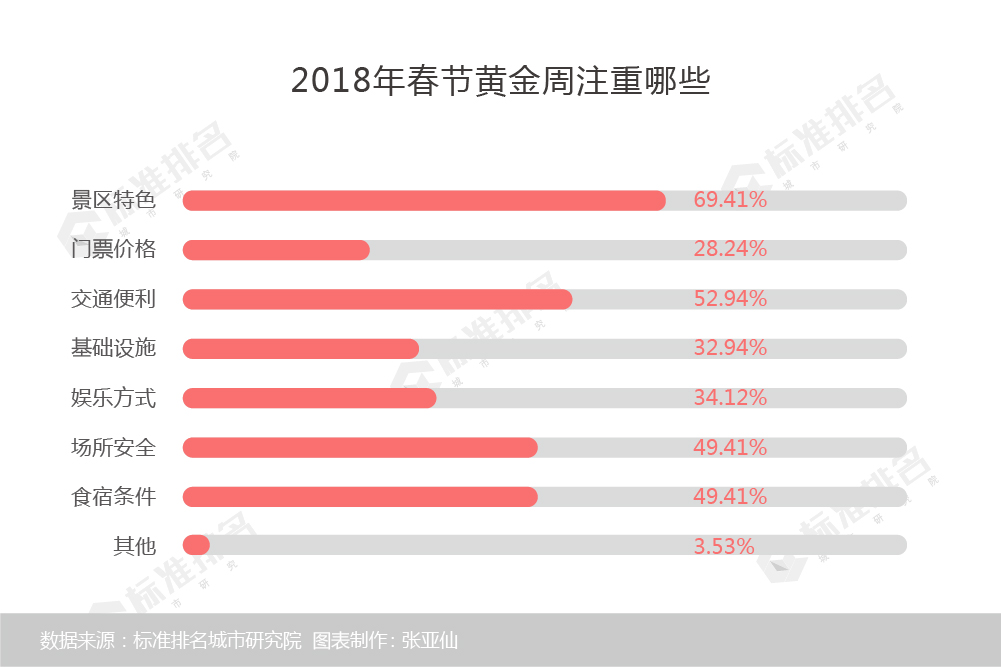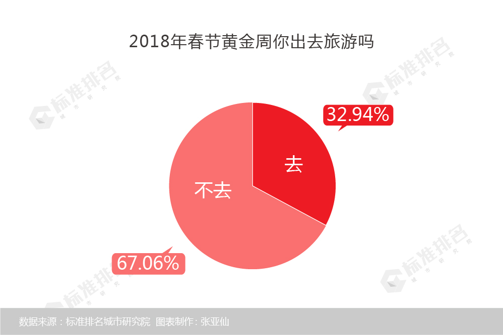 随着中国经济的快速增长,居民生活水平的提高,过年期间人们不再是吃大餐、打麻将、走亲访友了。人们的观念在慢慢转变,很多人收拾好装备带着家人、亲戚朋友加入到过年旅行的队伍中。2018年3月8日,标准排名城市研究院发布“2018春节黄金周国人旅行问卷调查报告”。