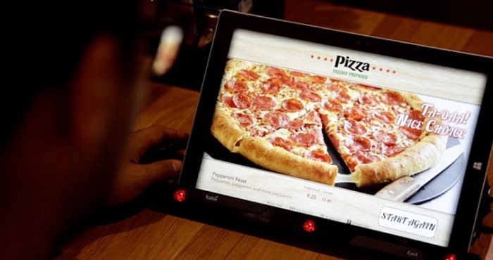 这双鞋从表面上看与普通运动鞋并无异样,只是在鞋舌顶部印有必胜客的品牌LOGO,然而玄机就藏在这里。这个LOGO实际上是个点餐按钮,鞋的内部配有GPS定位系统,还有蓝牙系统用于与手机的必胜客APP链接。用户只需按一下这个LOGO按钮,就能够实现一键下单订外卖。