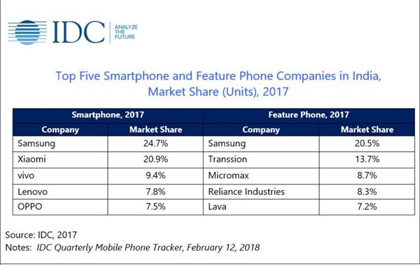 先看曾经被联想称之为其“福地”的印度智能手机市场,其在2016年的市场份额曾仅次于三星排在第二位,但仅一年之后,随着中国手机厂商小米、OV等的发力,联想的市场份额已经跌至第4位,不仅与后来居上,排名第二的小米(20.9%)存有13.1个百分点接近2.7倍的差距,且与排在其后的OPPO的市场份额相比也仅领先了0.3个百分点。而随着今年小米在印度市场的加码、OV注重市场深度的略调整及华为的大举进入,联想手机在印度市场无论是出货量还是营收都将承受较去年更大的压力。