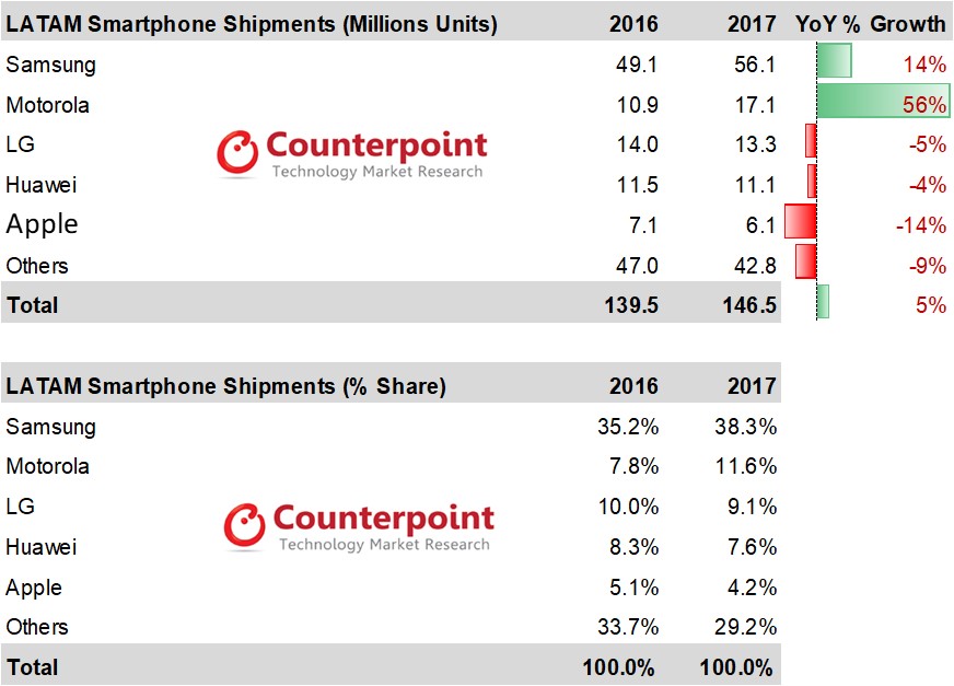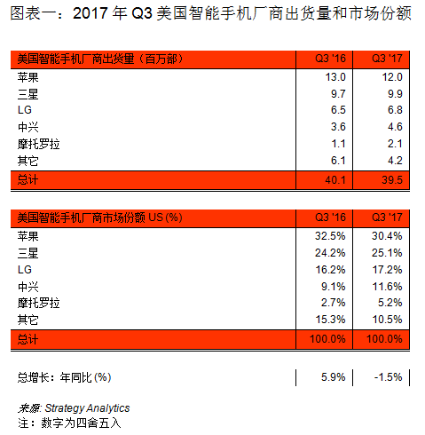 需要说明的是,联想去年第三季度之所以在美国市场逆势增长,与其激进的价格策略密切相关。例如美国运营商T-Mobile就在9月将原价是750美元的Moto Z2 Force下调到500美元,降幅高达33%,而这距其在美国市场发布仅2个月的时间。而另外一款主打机型Moto Z2 Play也在多种优惠措施的助推下销售。