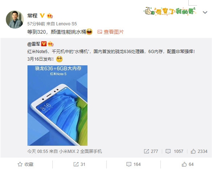 当联想集团副总裁、前ZUK品牌CEO常程在微博上宣布,联想将于3月20日举办新品发布会,正式发布新机联想S5,并且不忘顺便调侃一下小米时,我们确实难以理解联想的心态,是不屑还是羡慕,羡慕的是小米手机竟然在去年不仅起死回生还强劲反弹?还是不屑于小米的这种反弹,即小米可以,联想为何不可以?但我们想告诉联想的是,小米也曾遭遇过手机业务大幅下滑,甚至要将小米更名为“Others”的困境,但小米最终没有放弃自己的品牌而是坚持,单就这点,联想这种调侃的背后可能更多的是对于此次Lenovo品牌重建的一种无奈的表达。