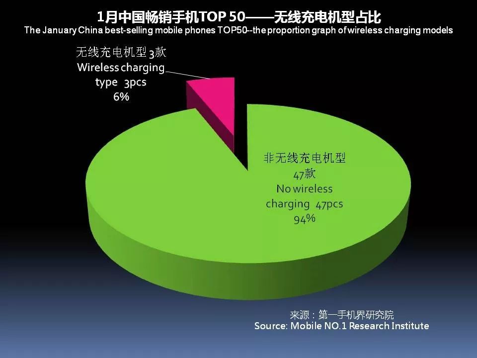 1月中国畅销手机TOP 50中,采用无线充电的机型有3款,占比6%,就是iPhone X、iPhone8 Plus和三星 Galaxy S8。