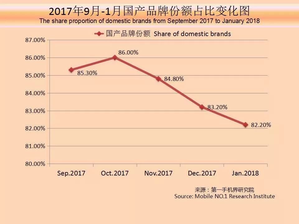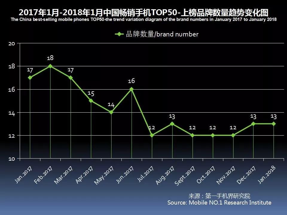 第一手机界研究院认为,2018年1月中国手机市场手机品牌和跑量机型数量双双下跌,再次说明2018年已进入4G收关年,运营商正在减少手机补贴。