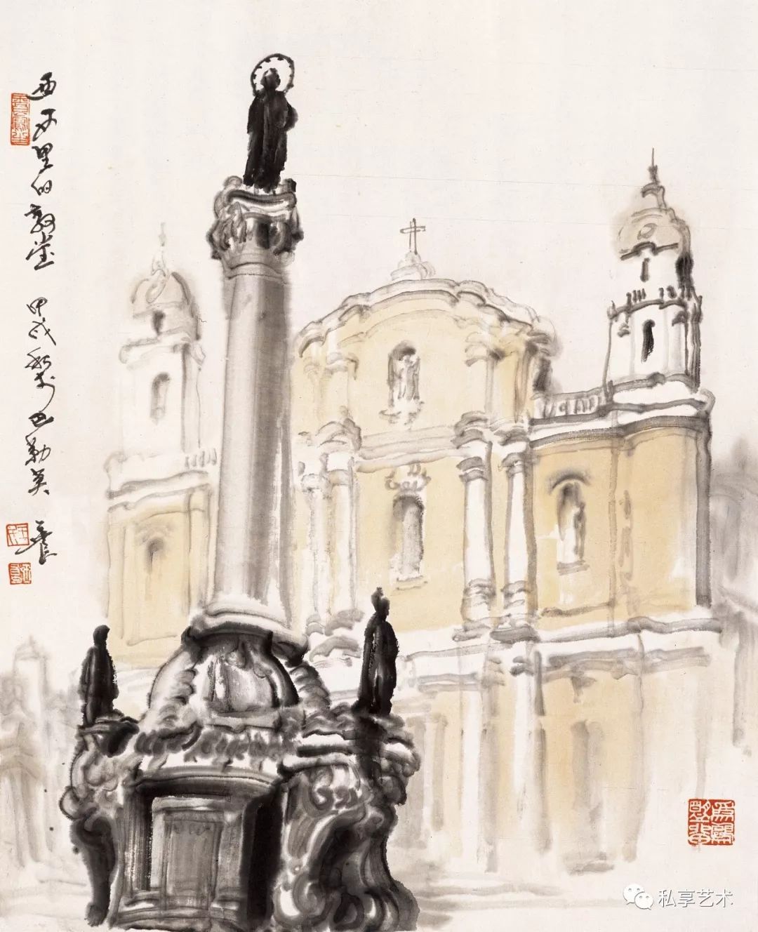 王玉良作品,西西里教堂,45×68厘米