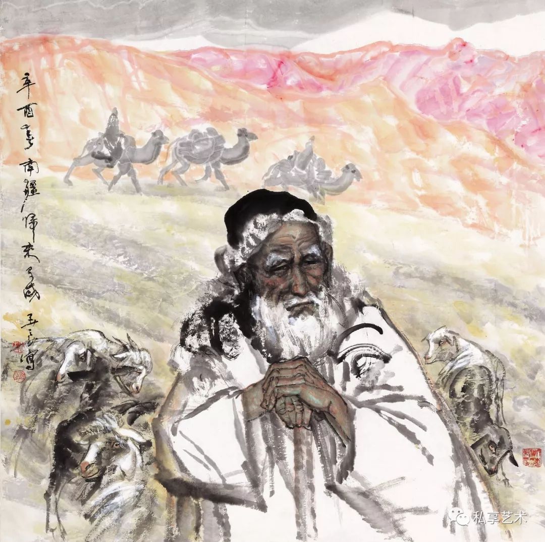 王玉良作品,牧羊老人,86x86厘米