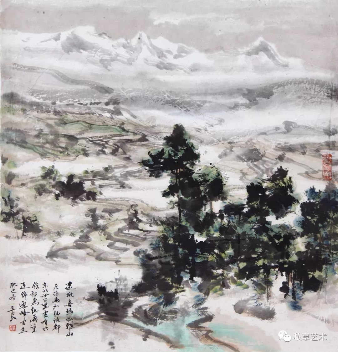 王玉良作品,远眺喜马拉雅山,42x45cm厘米