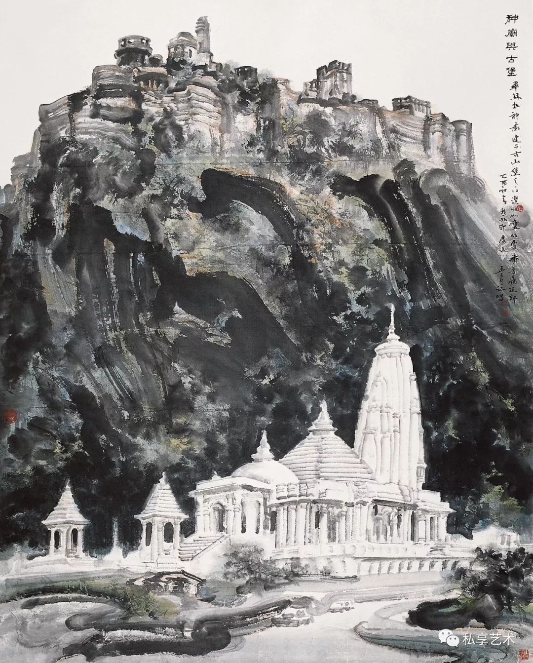 王玉良作品,神庙与古堡,144×180厘米