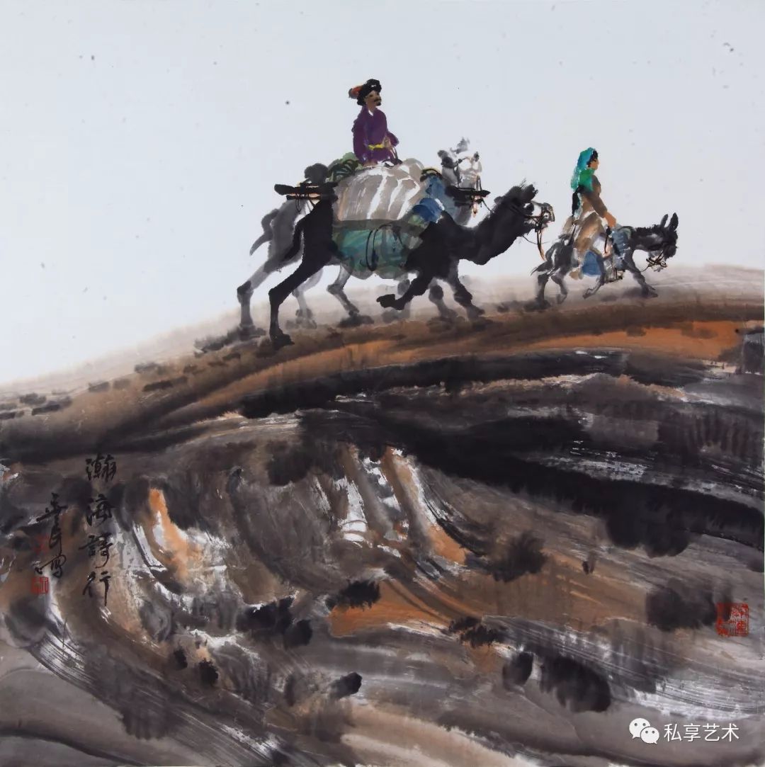 王玉良作品,瀚海歌行,69x69厘米