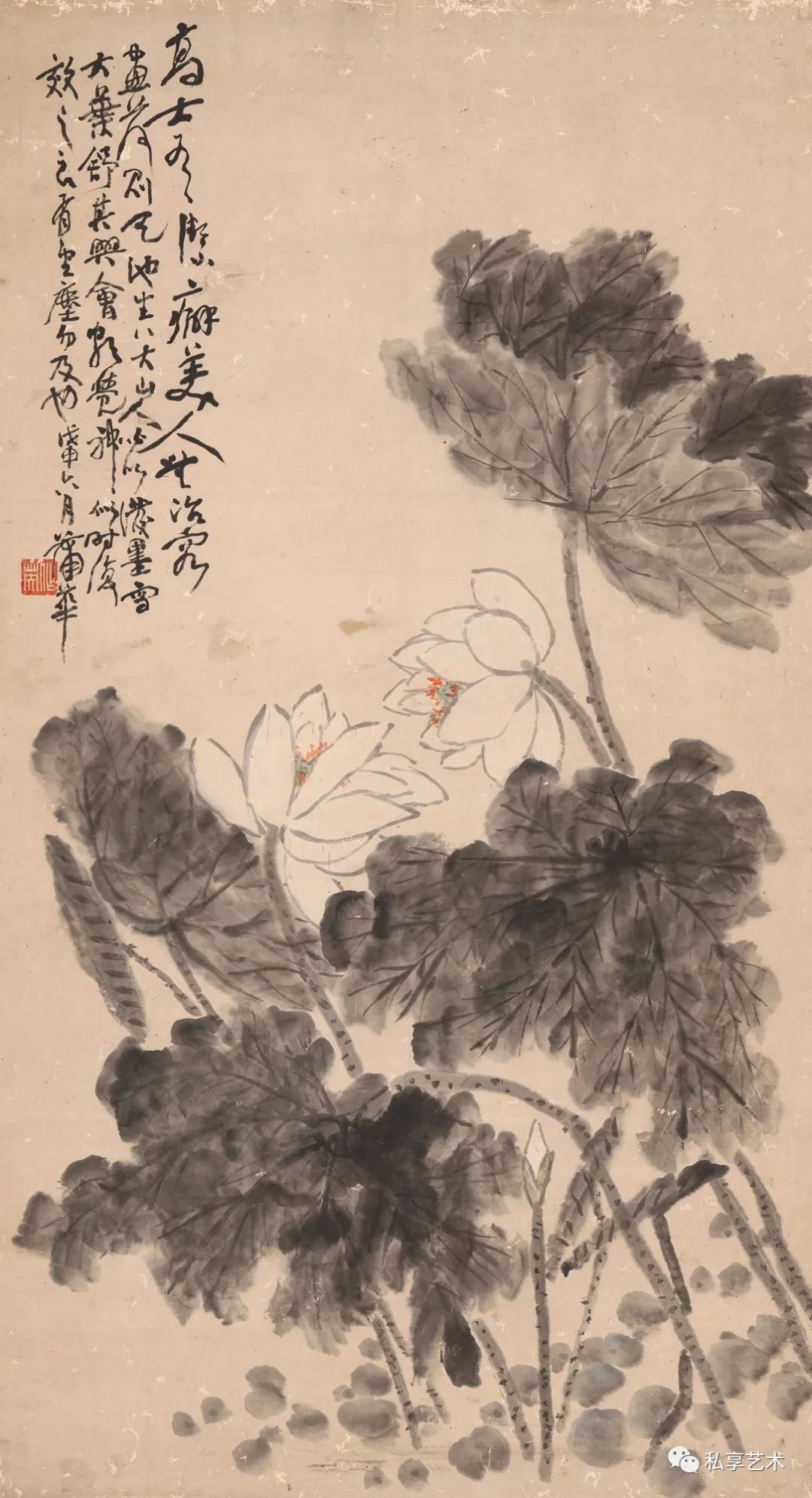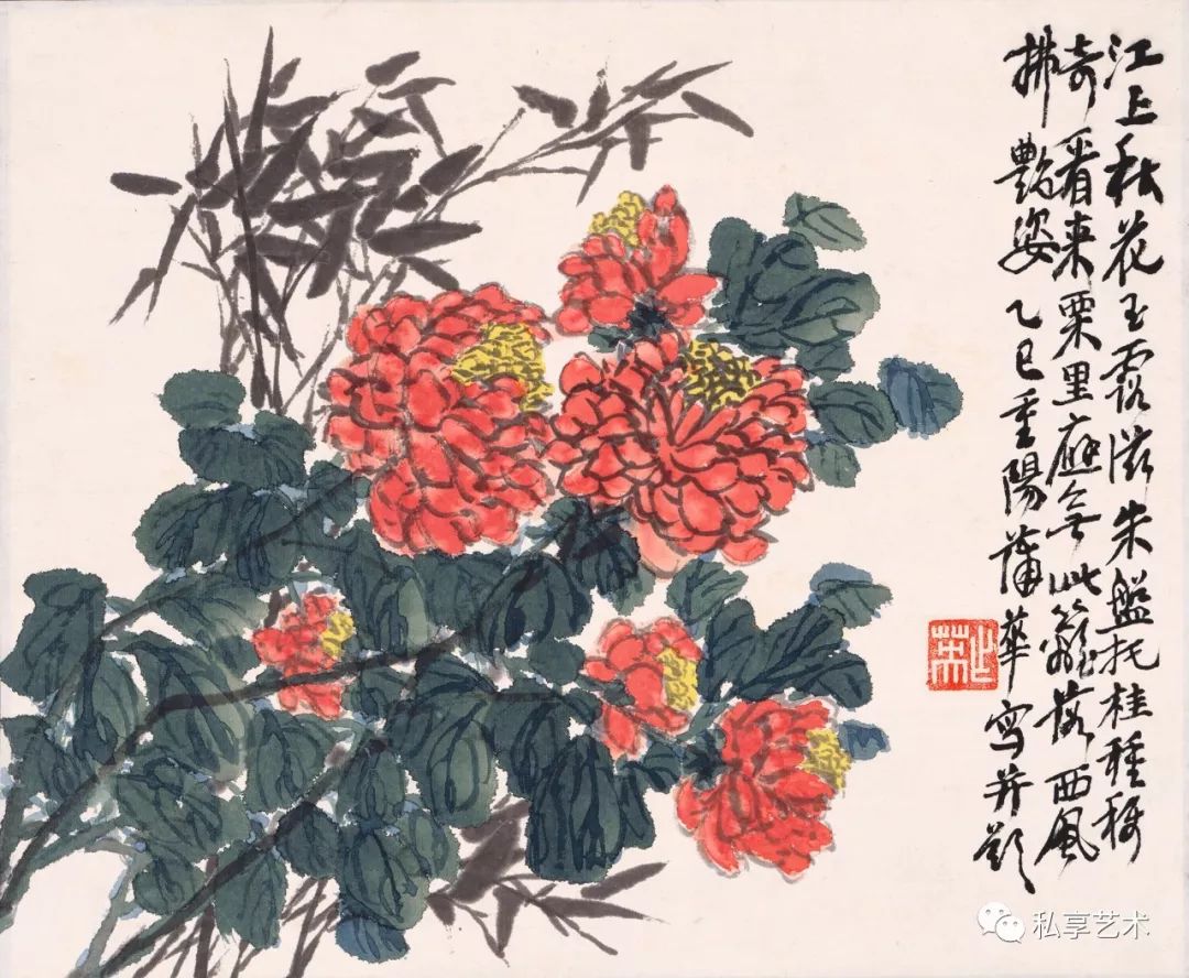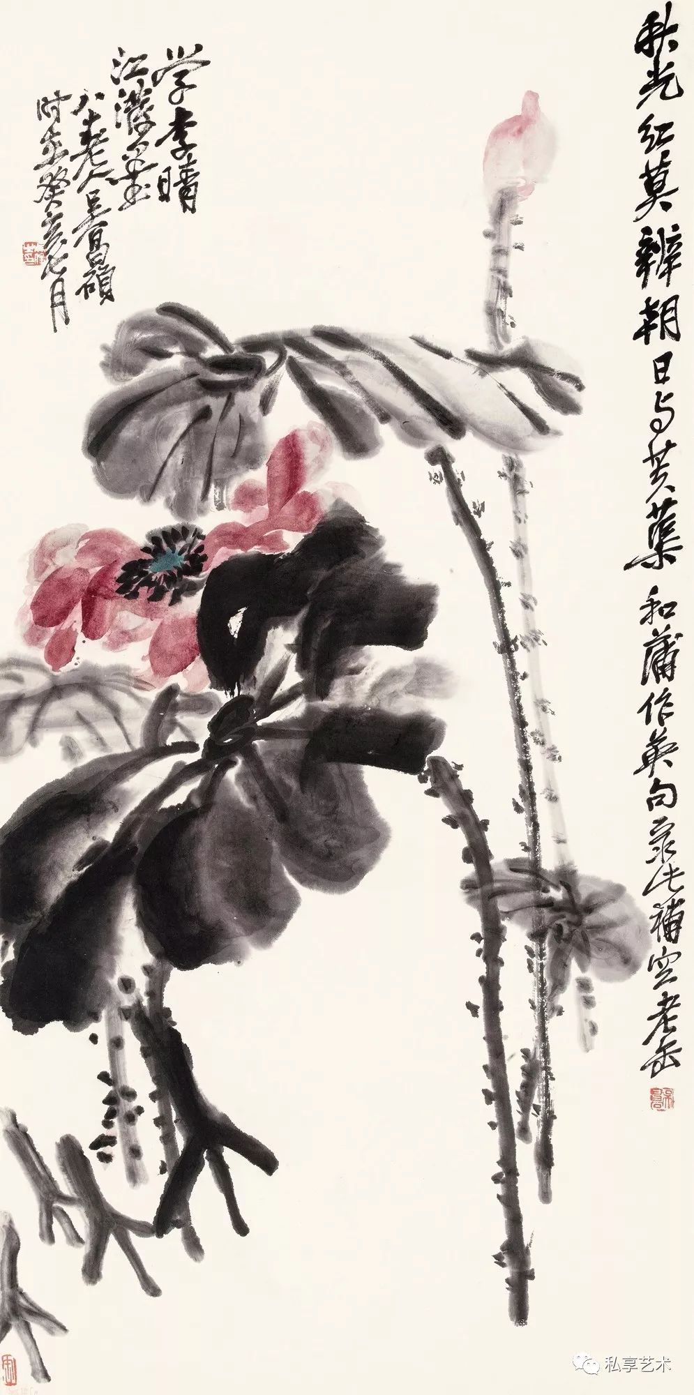 吴昌硕作品 朝日红荷