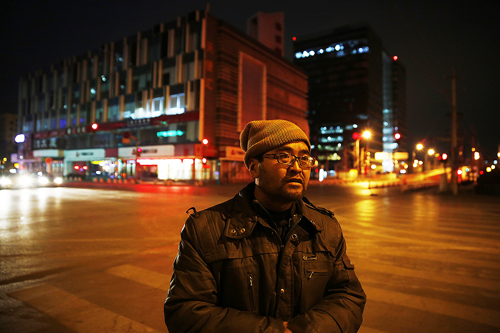 北京站附近的麦当劳里,几乎每张桌子旁都睡了一个人,而只有他醒着。当我们问他在麦当劳呆的理由时,他几经犹豫,终于告诉我们他是来找儿子的。他掏出了一张皱巴巴的证件照给我们看。证件照上正是我们前些天在中关村附近麦当劳采访的屈建强。当得知此事后大叔激动起来,念叨着让我们帮他,“儿子之前都有给家里打电话的,突然就不打了,家里惦记着他,我就出来找了,在昌平那边报了案,不管用,来这是准备明天一早坐车回家了,找不到没办法。”那天晚上,他身上也只剩下坐车回张家口老家的钱了。1月23日屈家东跟随记者来到中关村,看还能不能找到儿子。图片来源:财新网记者 梁莹菲/视觉中国