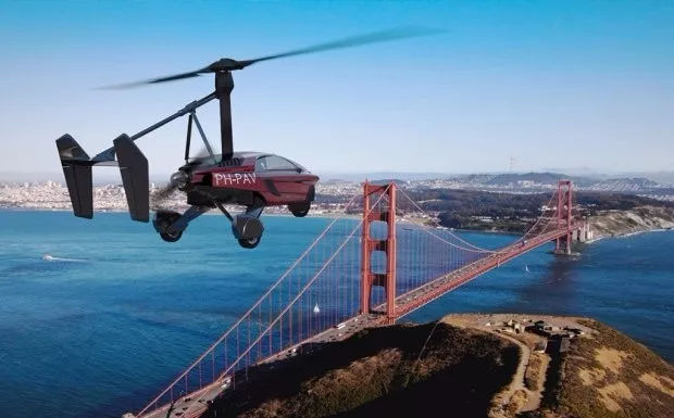 在不飞行时,是折叠缩起来安放在车顶上面,使用时再打开,就变成一个简易的旋翼飞机,这种旋翼飞机可以短距实现垂直起飞。