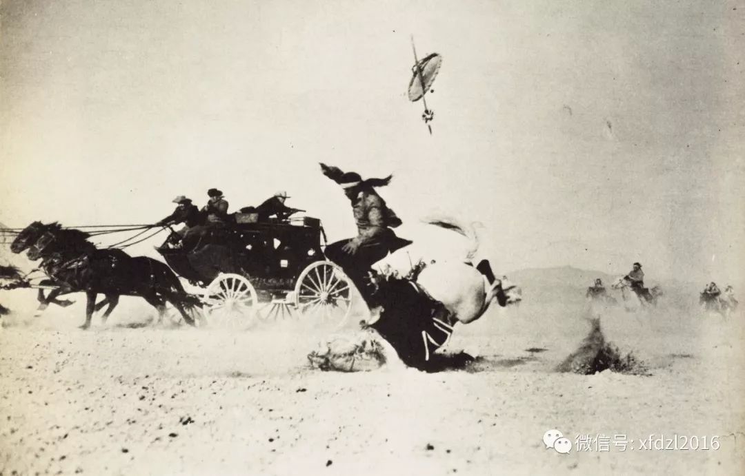 1939年的《关山飞渡》,有两个非常精彩的镜头:车底逃生、跃上马背,难度之大,场面之惊险,无与伦比:
