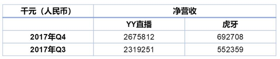 据各季度财报显示,2017年四个季度,虎牙直播的营收分别为3.8亿元、4.4亿元、5.5亿元和6.9亿元,一直处于增长态势。