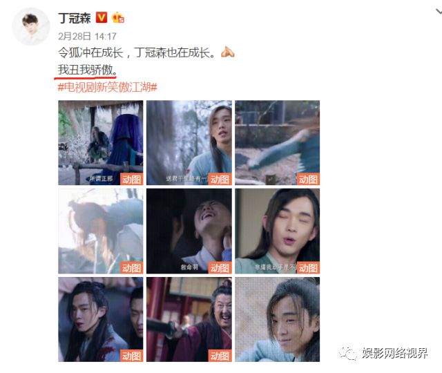 饰演令狐冲的演员丁冠森也敢于自黑,接受了网友们的吐槽,在微博发文说:“我丑我骄傲。”网友们也随之评论:“是的,你丑,你说什么都对!”