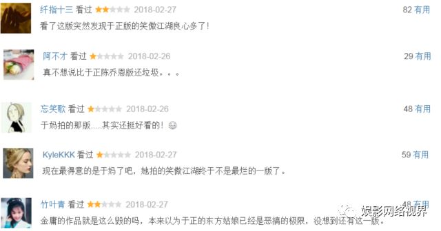 (来自豆瓣上网友们认为没有于正版《笑傲江湖》好看的评论)