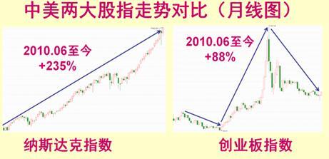 创业板指数是否会走出类似纳斯达克指数,领涨A股的行情?从目前的情况来看,“新经济”在创业板所占的成分比整体A股要大,这是创业板有望复制未来纳指走势的潜在因素之一。但要向纳指看齐,还需要有更多制度方面的建设,如对创新企业上市的包容、对内幕 交易和造假上市等违法行为的打击、对投资者回报的鼓励等长效机制,都还有待完善建立。惟有如此,创业板才能够“筑巢引凤”,吸引有潜力的好公司前来上市,甚至将已经在纳斯达克上市的国内新经济巨头京东、百度等吸引回流。