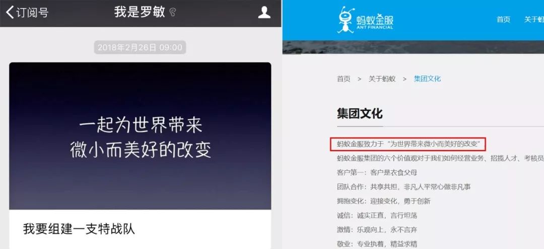 “为世界带来微小而美好的改变”是蚂蚁金服的企业文化