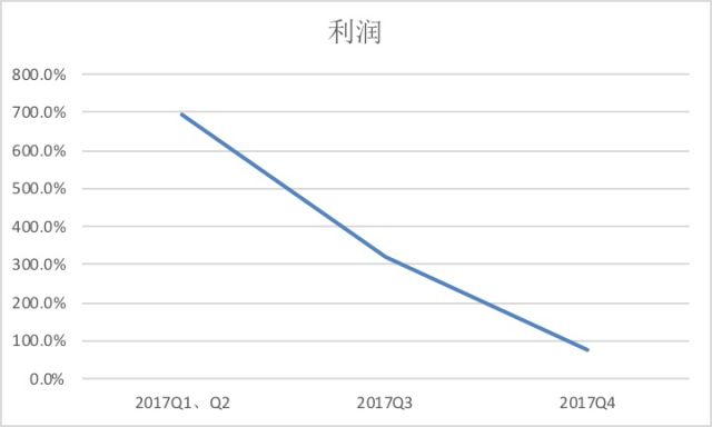 上面两张表反映的是趣店相关财务数据同比增长速度的变化趋势,从2017上半年、第三季度、第四季度三个数据来看,总营收和利润的同比增长速度严重下滑。