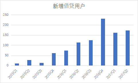 有意思的是,在趣店上市后的首份财报以及刚发布的年报中,这一深度影响财务数据的关键因素再也没有出现过。但从之前的数据中,我们也可以发现问题:2016年第四季度,是新增借贷用户的峰值,之后出现了明显的下滑。