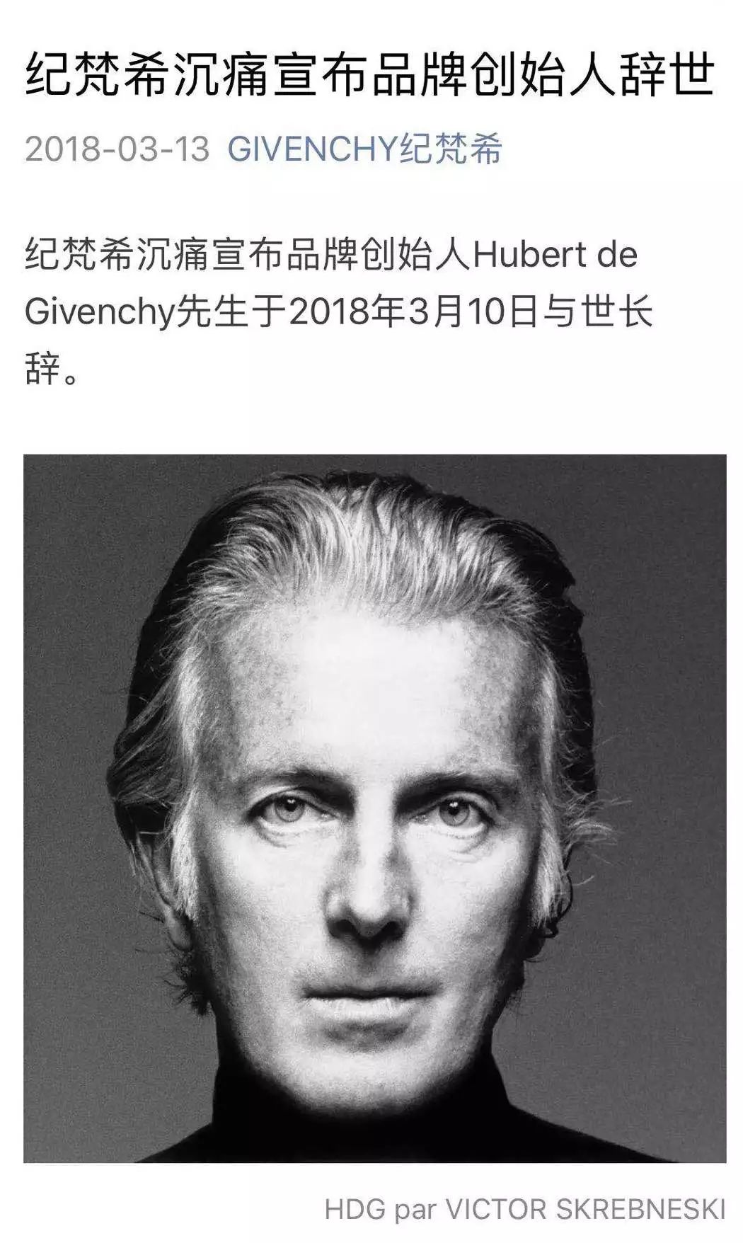 Givenchy创始人Hubert de Givenchy于贝尔·德·纪梵希3月10日去世,享年91岁。