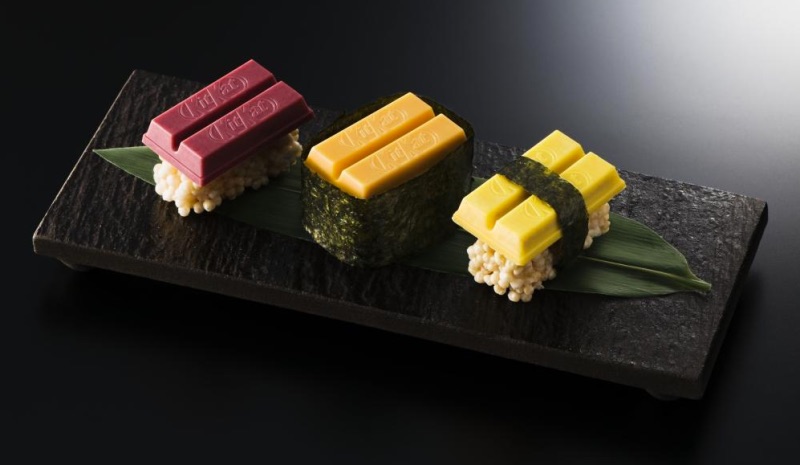 今年情人节期间,KitKat就和号称世界第四种巧克力“红宝石口味”的Ruby合作,推出粉红色巧克力。去年的这时候则是寿司版KitKat,裹着海苔、膨化食品的KitKat化身经典寿司,不过味道却与寿司完全不一样,如同低配版分子料理。