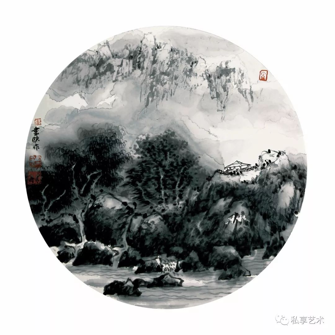 王书杰作品 峡江图 68x68厘米