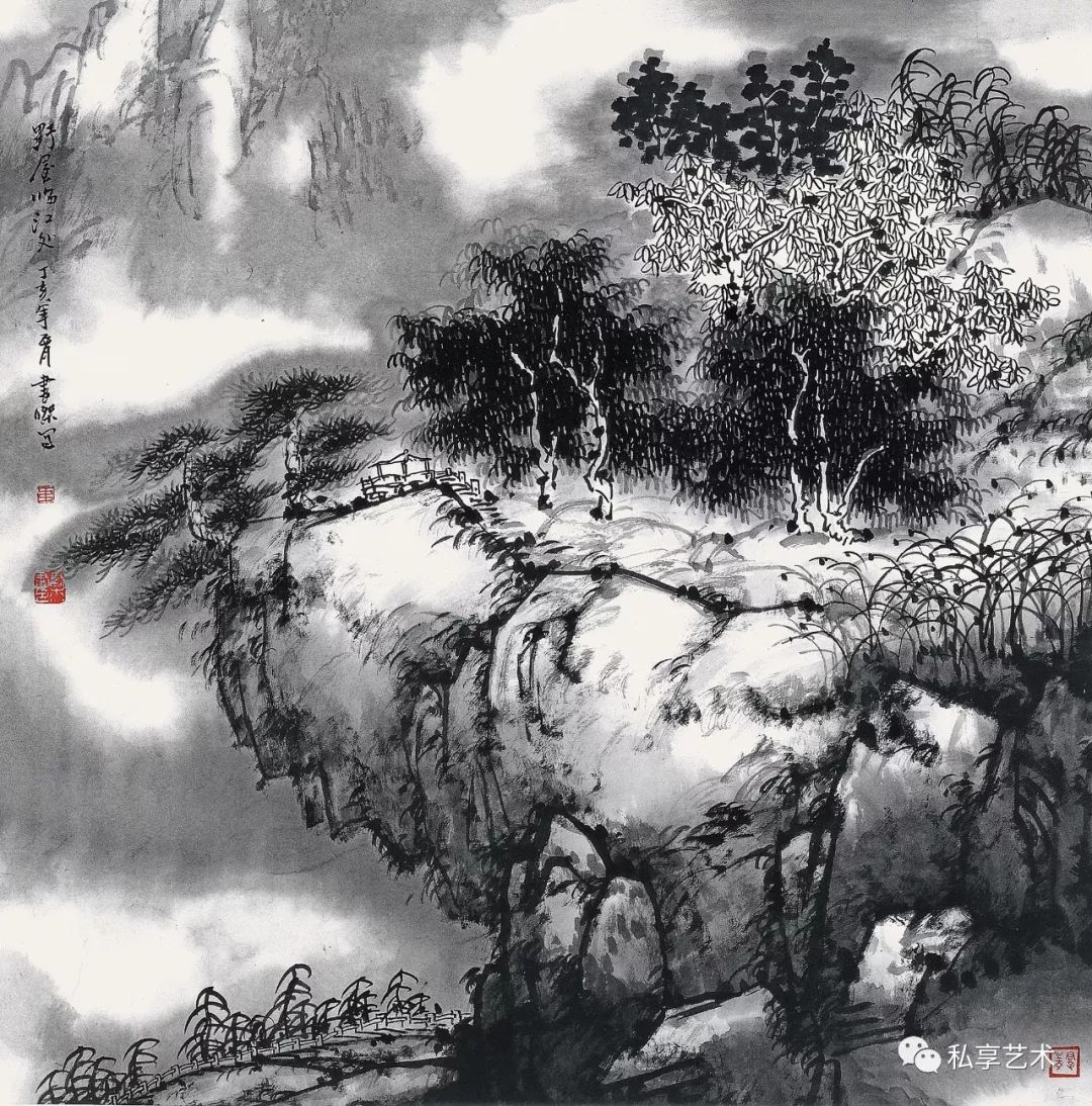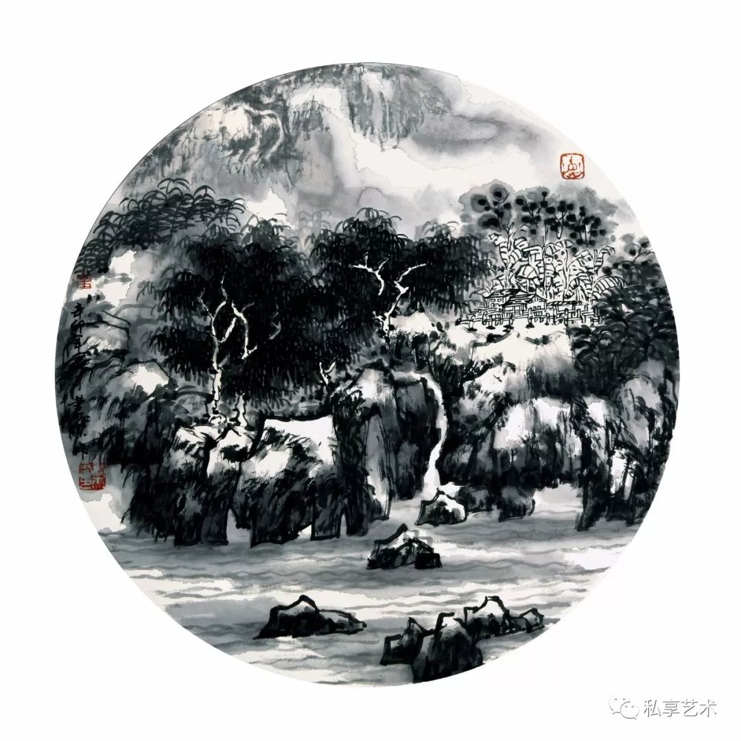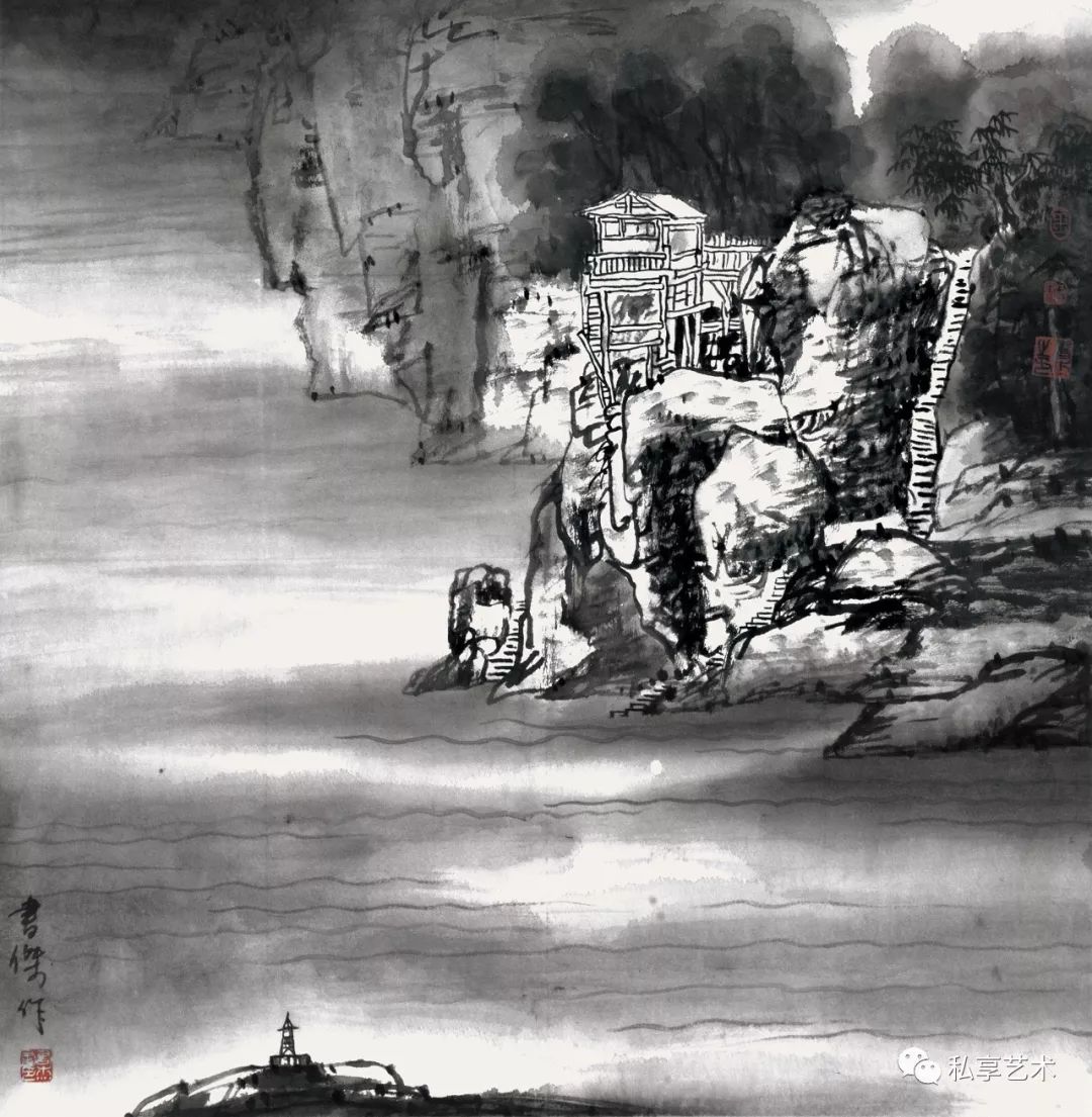 王书杰作品 野屋临江 68x68厘米