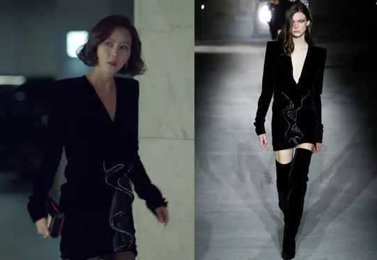 而夫妻勇闯黄金俱乐部的特别晚宴,一条SAINT LAURENT垫肩mini小礼裙,让自己看起来像个自信满满的战士~