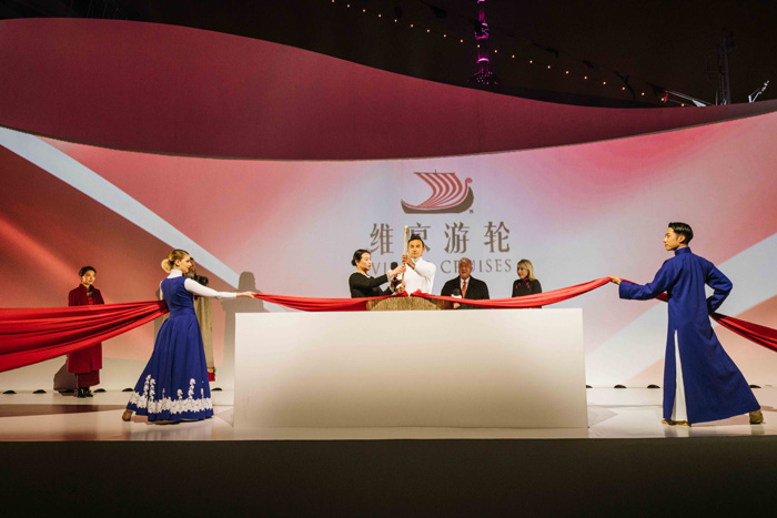 命名典礼沿袭了几千年航运历史的悠久传统。维京游轮邀请招银金融租赁有限公司副总裁娄怡女士作为“维京太阳号”的教母,在维京游轮董事会主席托尔斯泰·哈根(Torstein Hagen)、维京游轮高级副总裁Karine Hagen以及数百位嘉宾的见证下,完成了“掷瓶礼”这一传统仪式,为“维京太阳号”正式命名,并祝福新船航行平顺。娄怡女士同时也是第一位与维京游轮合作的中国教母。