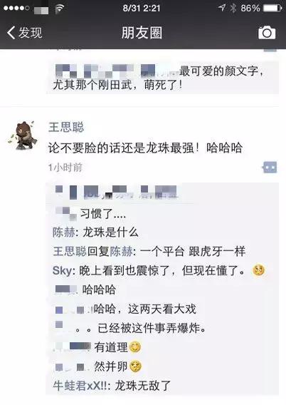 斗鱼与龙珠之间打得火热的时候。王思聪在朋友圈贴出了“这波我给满分”的截图。图片中的文字显示,龙珠除了借斗鱼上位之外,还把斗鱼抹黑的一无是处。第二次截图就是,“论不要脸的话还是龙珠最强!”