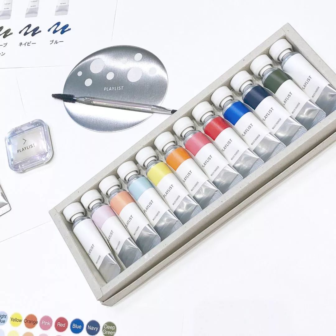 资生堂旗下品牌Playlist 推出了一款颜料彩妆Multi Painter,将所有面部彩妆设计成水彩颜料造型。