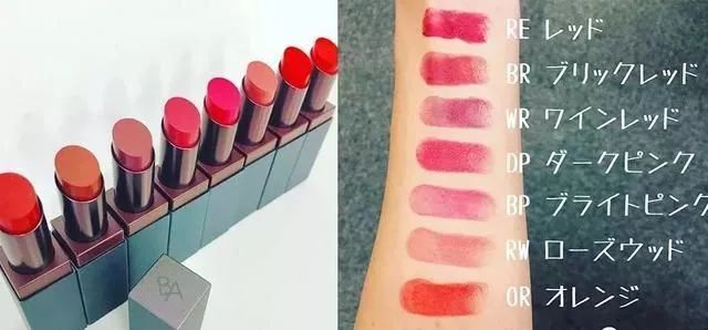 POLA B.A彩妆线主要以口红为主,添加了黑B.A系列特有的抗皱精华、水解丝等保湿成分,非常保湿滋润。口红有大红、珊瑚橘、酒红色等8色,单支售价6000日元(RMB358左右)。此外还有双头唇刷笔,共有红色、酒红、米色、粉色四色。
