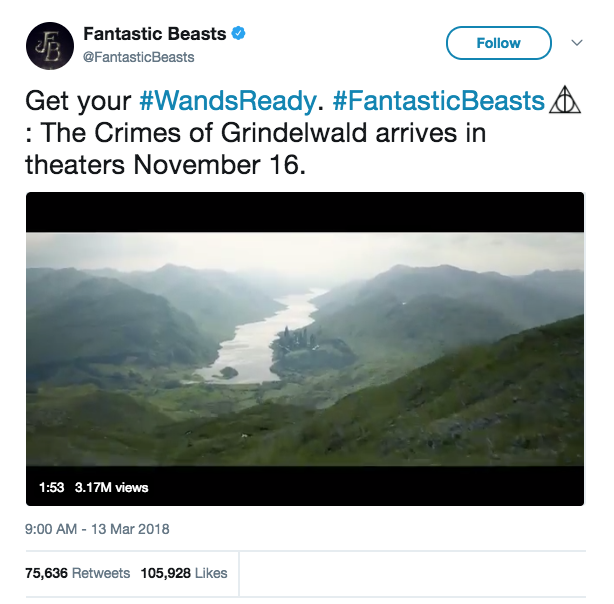 魔杖都准备好了吗。#神奇动物2:格林德沃之罪将于11月16日上映。