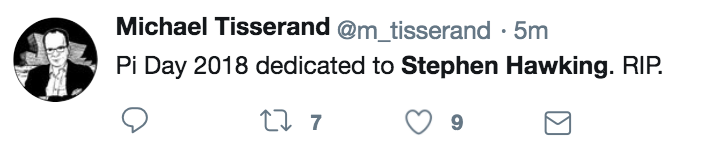 也有网友意识到霍金逝世的这天正是国际π日,国际数学节: