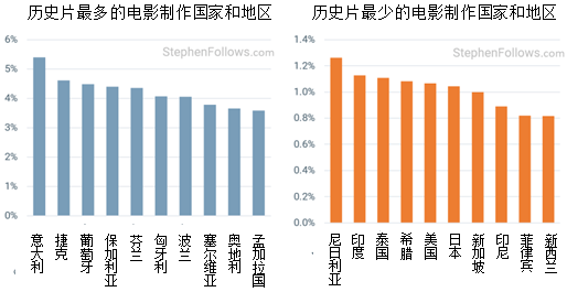正如我们在开头所见,欧洲国家在最大的历史片制作国中占据重要位置。