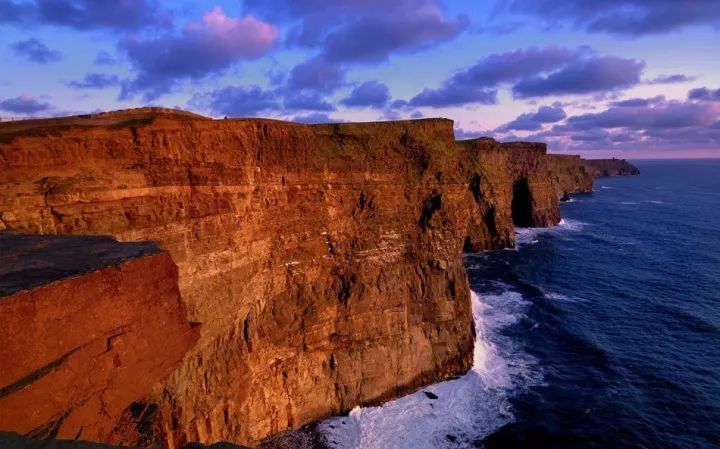 面向浩瀚无际的大西洋,莫赫悬崖的俊俏冷酷,以奇险闻名,是欧洲最高的悬崖,也是爱尔兰最重要的海鸟栖息地,每年有超过3w只海鸟在那里繁殖后代。